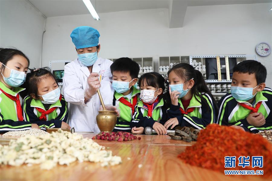 10月28日,在棗莊市臺兒莊區西關小學,文藝志愿者馬永法(中)在指導小學員。(新華社記者 郭緒雷/攝)