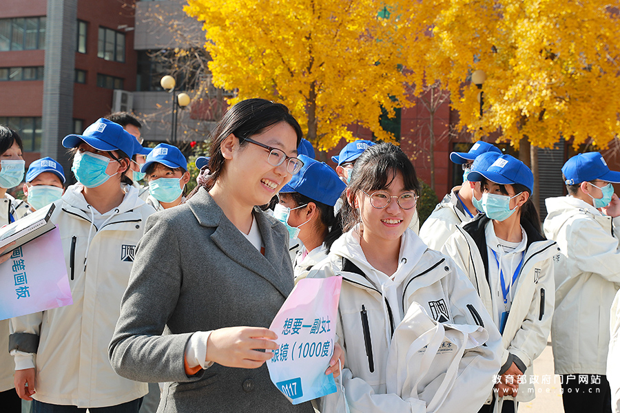11月13日,中國(guó)地質(zhì)大學(xué)(北京)的師生與青海省化隆縣學(xué)生合影留念。(雷鳴 張學(xué)軍/攝)