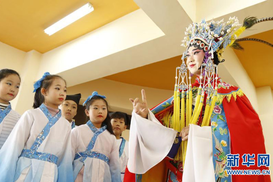 11月19日,滄州青縣實驗小學的學生在體育老師的指導下練習盤古王拳。 近年來,“武術之鄉”河北省滄州市教育、體育部門對體育教師進行強化培訓和技術指導,并根據青少年身心特點,編制融合當地特色拳種特點的系列武術教材,持續推進傳統武術進校園活動。(新華社記者 王民/攝)