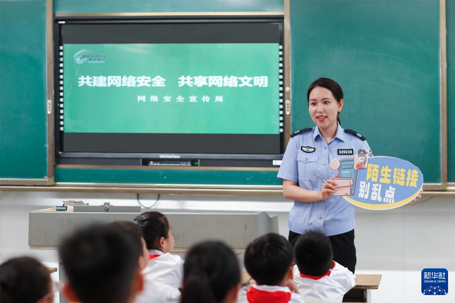 9月26日,在山東省青島愛迪學校,學生在長卷上繪畫。國慶節臨近,多地幼兒園、小學舉辦形式多樣的國慶主題趣味活動,歡樂迎國慶。(新華社發 張鷹/攝)