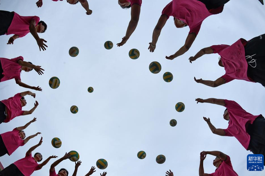 6月3日,四川省成都藝體中學高三學生練習排球減壓迎高考。(新華社發 李向雨/攝)