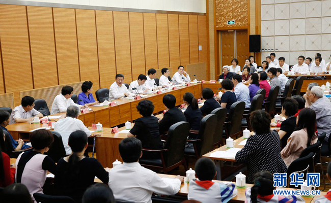 9月9日,中共中央總書記、國家主席、中央軍委主席習近平來到北京市八一學校,看望慰問師生,向全國廣大教師和教育工作者致以節日祝賀和誠摯問候。這是習近平同北京市和八一學校教師學生代表座談。(新華社記者 鞠鵬/攝)