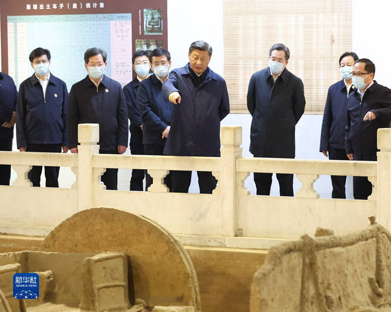 10月26日至28日,中共中央總書記、國家主席、中央軍委主席習近平在陜西省延安市、河南省安陽市考察。這是28日下午,習近平在安陽市殷墟遺址考察。(新華社記者 鞠鵬/攝)