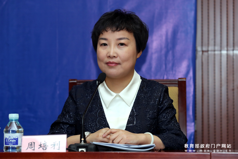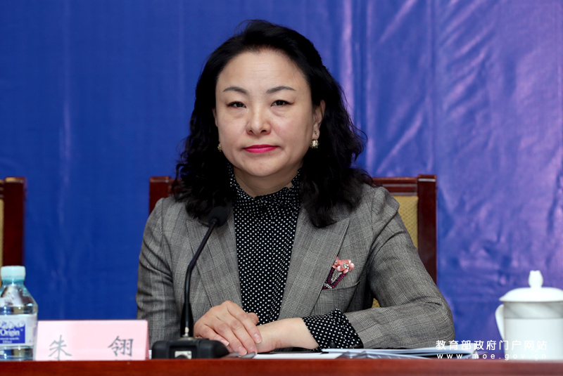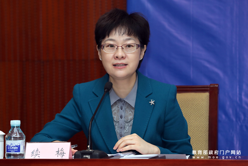 教育部新聞發(fā)言人續(xù)梅主持發(fā)布會。(中國教育報記者 張勁松/攝)